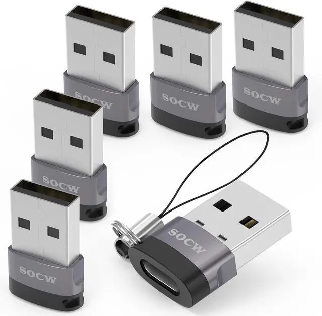 USB C Female to USB Male Adapter 2.0 (Grey 6 Pack)
