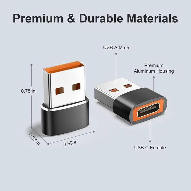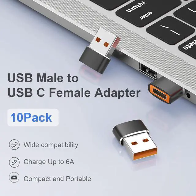 Note: It does not support video signals including HDMI or VGA and is not compatible with MagSafe chargers or MacBook charging. wide CompatibilityCompatible with most USB-A chargers laptop ports and car chargers. Also Compatible with iPhone 17/16/15 Pro Max iPad Pro iPad Air iPad mini 7 6 Galaxy S25/S24/S23/22 series Google Pixel and other Type-C devices. Durable & Safe DesignMade from durable aluminum alloy for excellent wear resistance and heat dissipation. The connectors can endure up to 20 000 plug-in cycles. What You GetA pack of 10 high-quality USB-A to USB-C (male-to-female) adaptersideal for home office car or travelwith 24/7 customer support.