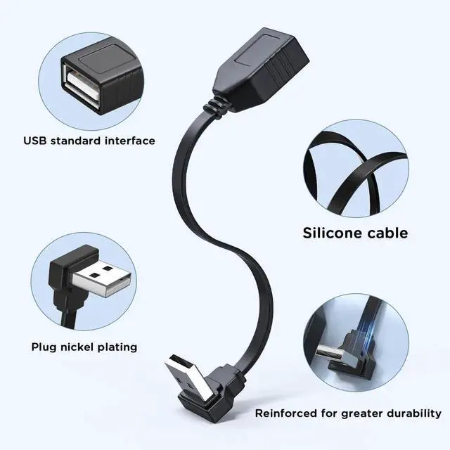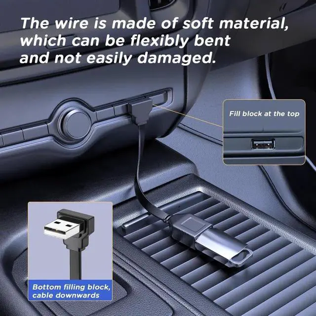 Space-Efficient 90-Degree Cable: This cable's small USB plug is perfect for cramped spaces and works with all USB interfaces found in cars.