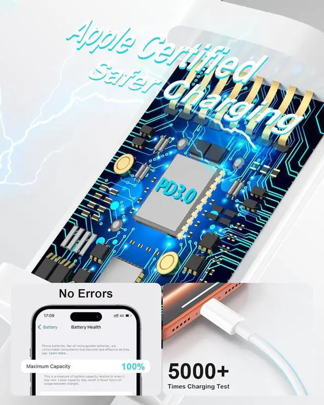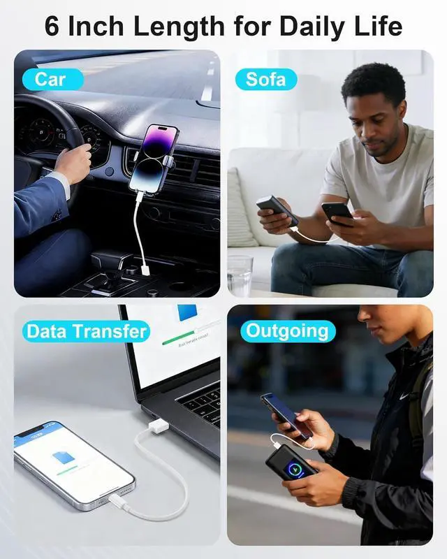MFi Certified for Guaranteed Safety & Compatibility - Acecene 6inch USB-C cable officially certified by to ensure safe stable and reliable charging for your iPhone iPad and other devices with usb-c. Built-in chip protects against overheating and electrical hazards. 30W Fast Charge & 480Mbps Data Sync - Delivers up to 30W super fast charging for compatible devices like iPhone 17/16/15 iPad Pro/Air and supports 480Mbps high-speed data transfer for quick file syncing between devices and computers. Extreme Durability - 0.5 feet USB Type C cord engineered with a rugged PVC jacket and rigorously tested to withstand over 20 000 bend tests plug/unplug cycles and 5000 cycles of charging test to last through daily wear and tear.