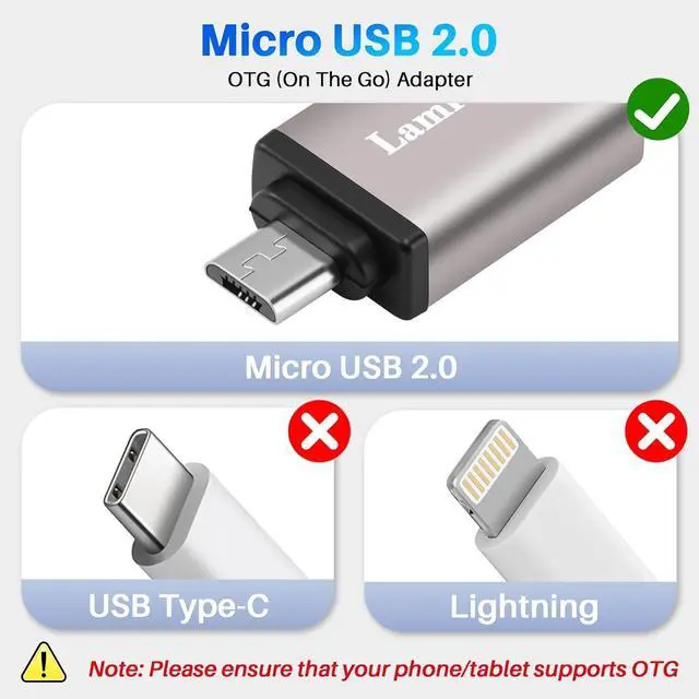 (Note: Please make sure your cell phone/tablet can support OTG function before your purchase. This adapter is unidirectional and only supports OTG function It does not support charging)Portable and