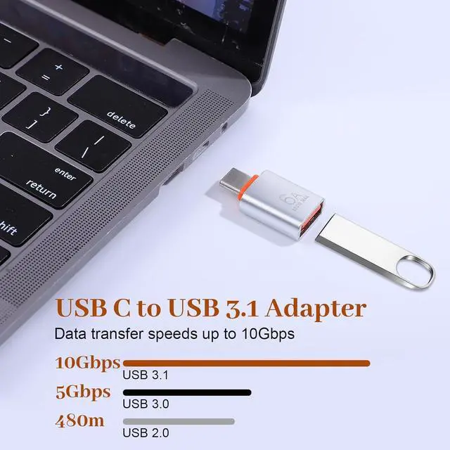 Fast Data TransferExperience seamless data transfer with the USB C to USB 3.1 adapter offering speeds up to 10Gbps. This high-speed capability allows for quick synchronization of large files including 4K movies and music between devices. Efficient ChargingThe USB C to USB A adapter supports fast charging up to 120W providing ample power for smartphones tablets and laptops. The adapter's power management system optimizes charging performance though compatibility with your charger and device specifications is necessary for maximum efficiency. Universal CompatibilityDesigned for versatility this usb-c male to usb-a female adapter connects USB-C devices to USB-A peripherals including flash drives external hard drives and keyboards.