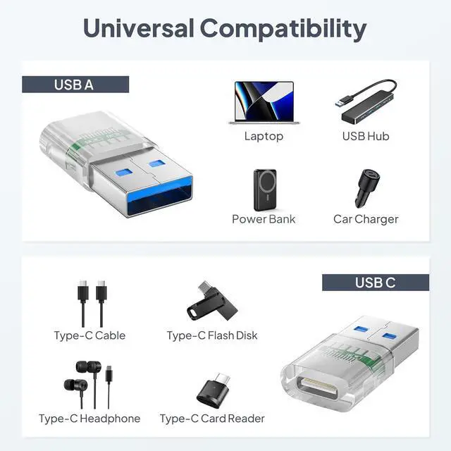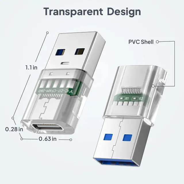 PLEASE NOTE: they are not suitable for video exportation and cannot be used with cables adapters or docking stations that provide video output except for webcams. Perfect for quickly duplicating large files and connecting USB-C earphones wireless network adapters and SD card readers. (Gap Bridged) Need to plug your USB-C enabled device to your quaint devices that only have USB-A ports? Then these USB-A Male to USB-C Female adapters are made for you. Simply plug the adapter into the USB-A port of your device and you can instantly connect your USB-C peripherals to the device that originally did not have the right connection interface. (Beauty and the Beast) These USB adapters feature a durable PVC shell designed to withstand strong impacts and provide a stable long-lasting connection and adds visual appeal. With these adapters you can say goodbye to dropped signals annoying interruptions and fading colors over time. (Plug Once Connected Forever) To improve the user experience of these adapters we greatly minimized the size of these adapters so that they can always stay plugged into the port of your device without any conspicuous protrusion which saves you from endless plugging the wearing of these adapters and the port of your device.