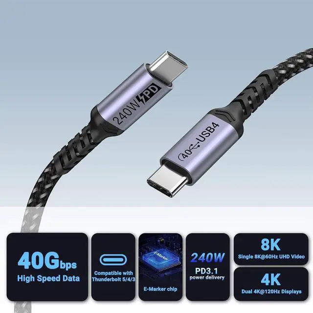 Fast Charging]: The usb c cable supports 240W 48V/5A fast charging. Connecting with thunderbolt 4 port and Charging with your PC tablet mobile phone very quickly[40Gbps
