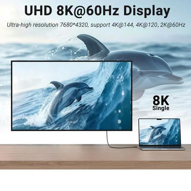 Video Display ]: The usb c display cable offers UHD resolution. Connect your laptop to an external monitor or extend your screen up to 8K@60Hz or two 4K@60Hz displays on the same time(Note: as for video function please ensure your devices having USB C ports support