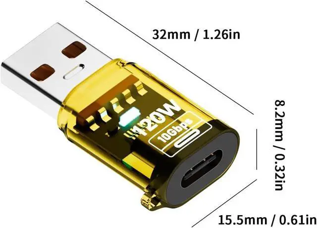 10Gbps Data TransmissionUSB C Female to USB Male Adapter can support USB 3.2 Gen 2 data transmission speed up to 10Gbps realizing stable and efficient data transmission and both sides can reach the maximum speed. 120W Fast Charging10Gbps USB-C to USB-A Adapter supports fast charging up to 120W 20V 5A. Laptop charging is support. MagSafe charger is not supported. Wide compatibilityUSB to USB C converter can connect the USB devices such as external hard disk keyboard mouse game control USB memory and card reader can be connected to smart phones or tablet computers with C-terminals so make full use of USB peripheral devices.