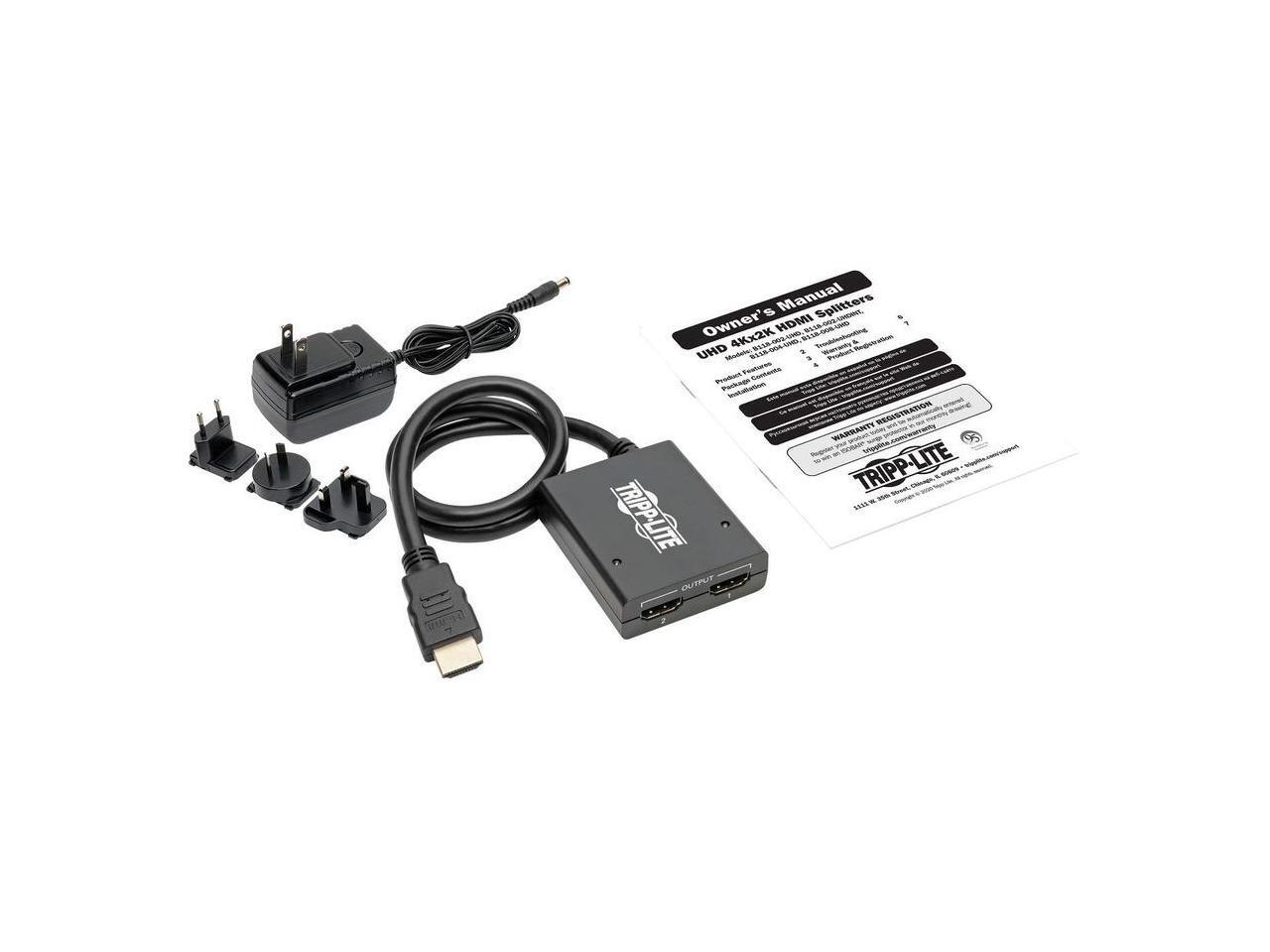 Tripp Lite 2-Port HDMI Splitter - UHD 4K, International AC Adapter - 3840 ? 2160 - 2 x HDMI Out - Gold Plated