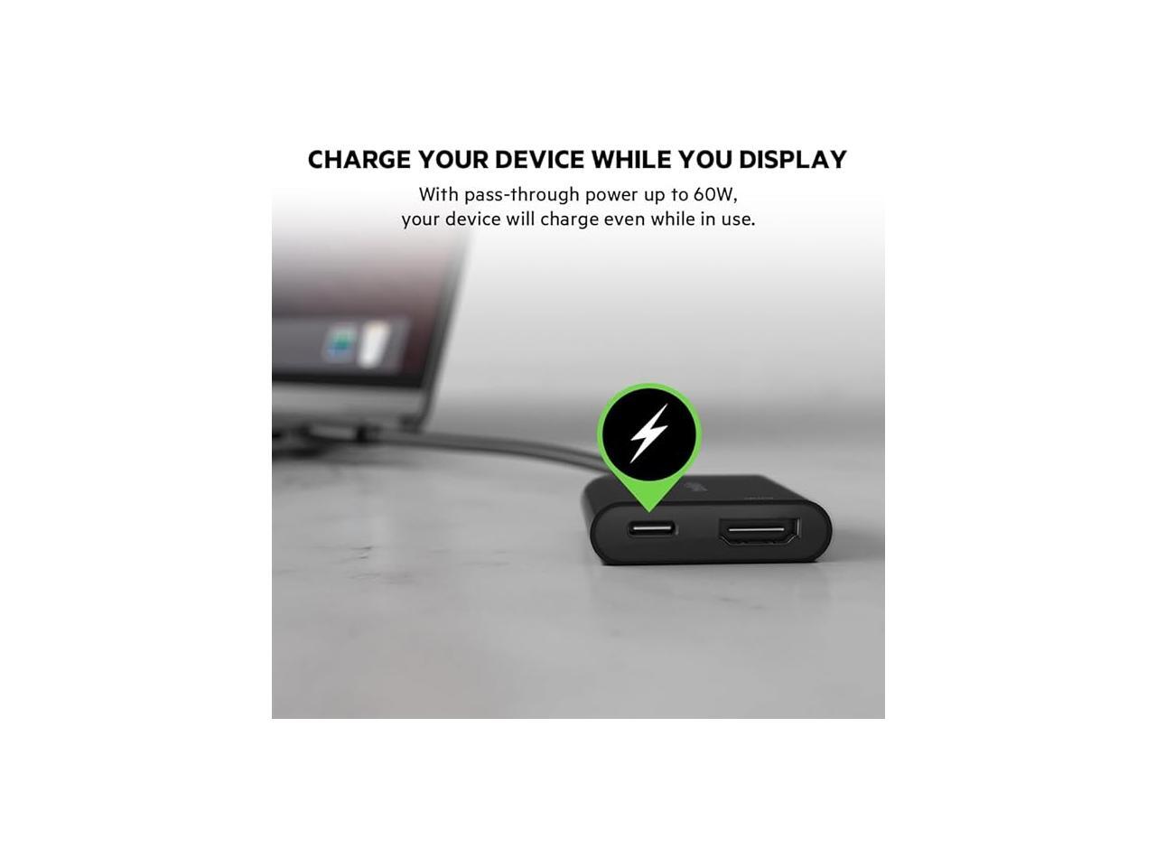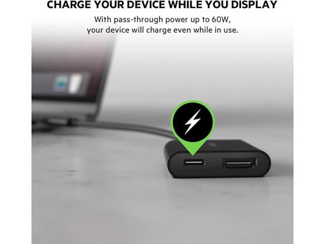 Belkin USB-C to HDMI Adapter W/ USB-C Charge Adapter, 4K UHD Video Passthrough, Up to 60W Power Output, Compatible with All your USB-C Devices
