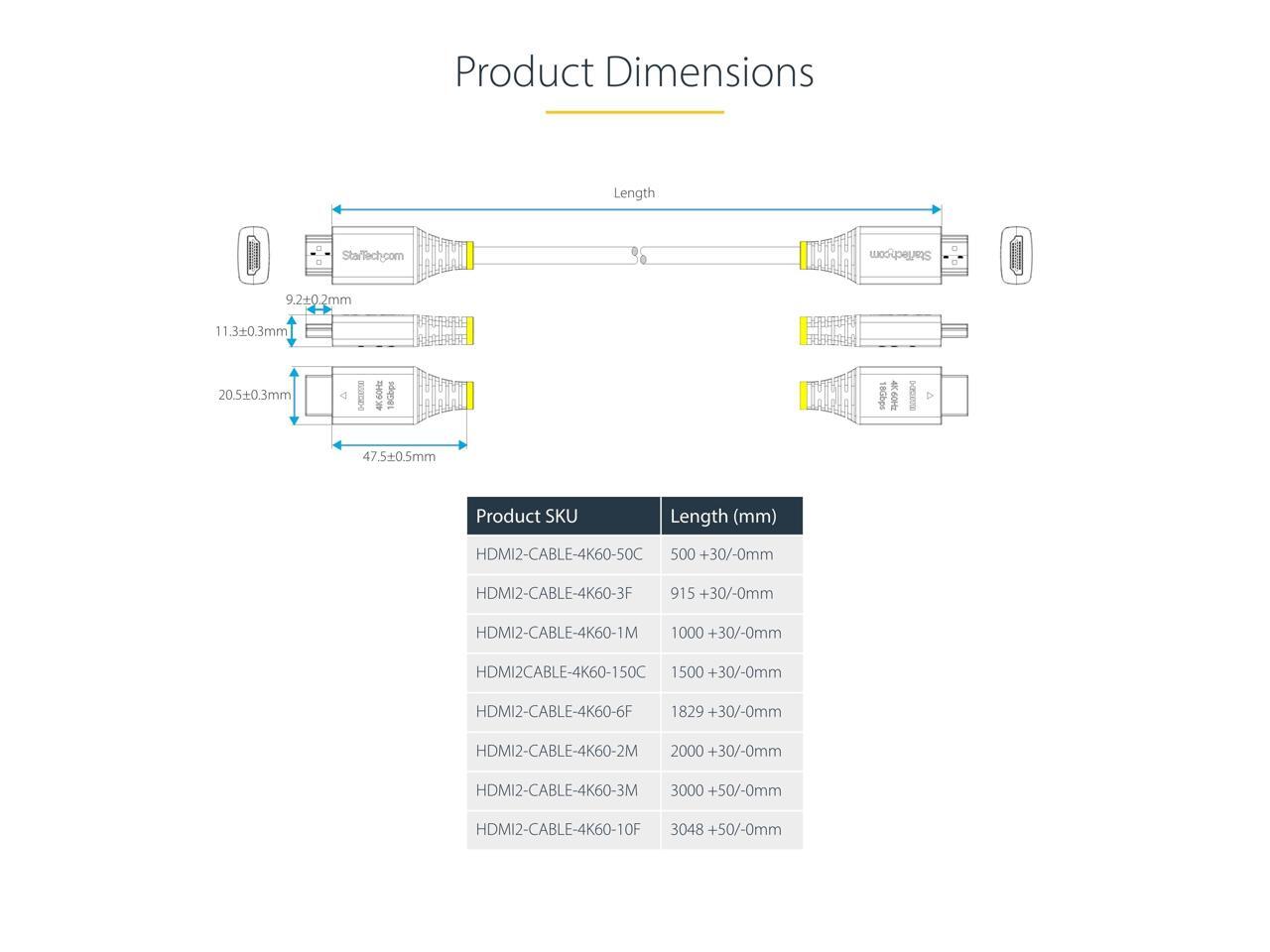 StarTech 1.5m (4.9ft) Premium Certified High Speed HDMI Cable, 4K 60Hz/1440p 144Hz, HDR10/HDCP 2.2/ARC, 18Gbps, UHD HDMI 2.0 Cord for TV/Monitor, TPE Jacket - HDMI2CABLE-4K60-150C