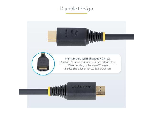 StarTech 15ft (4.5m) Premium Certified High Speed HDMI Cable, 4K 60Hz/1440p 144Hz, HDR10/HDCP 2.2/ARC, 18Gbps, UHD HDMI 2.0 Cord for TV/Monitor, TPE Jacket - HDMI2-CABLE-4K60-15F