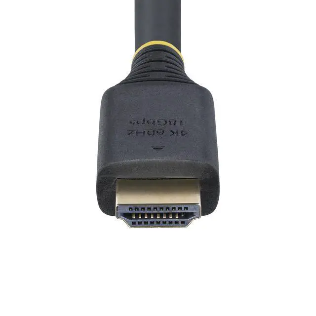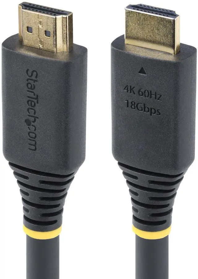 Connect this Active High Speed HDMI Cable to UHD-enabled HDMI devices; Use connector markings to quickly identify specs at-a-glance - Supports 4K 60Hz video with High Dynamic Range (HDR10); Guaranteed HDMI compatibility - Ideal for 4K TVs/monitors/docking stations; TPE jacket w/braided shield - Black; 50-foot ( 15.2 -meter); HDMI 2.0 w/HDR10/HDCP 2.2 /ARC; 18Gbps; 4K 60Hz/1440p 144Hz/1080p 120Hz; 32-ch Audio; Compatible w/HDMI 1.4; 24AWG; 9mm ( 0.35 in) O. D.
