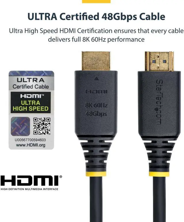 StarTech 1m (3ft) Certified Ultra High Speed HDMI Cable, 8K 60Hz/4K 120Hz, HDMI 2.1 Cord with HDR10+ / eARC, 48Gbps