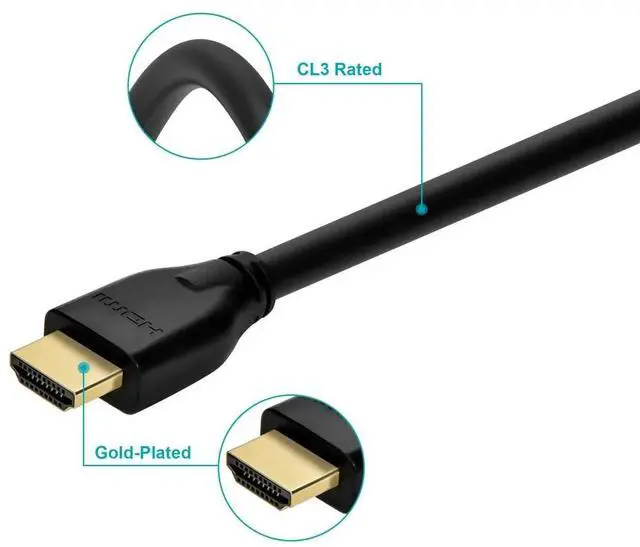 Designed for safe in-wall installation, the CL3 flame-retardant jacket meets residential building code requirements, making it ideal for clean, professional setups. Premium build quality includes gold-plated connectors and robust shielding for reliable, interference-free performance. Whether youre watching 8K content, playing competitive games at 4K120Hz, or connecting AV equipment for commercial use, this cable ensures uncompromising performance and full compliance with the latest HDMI 2.1 standards.