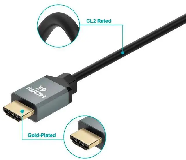 4K Certified High-Speed Slim HDMI Cable 4K60Hz, 18Gbps, HDR, CL2 Rated, Gold-Plated, Black