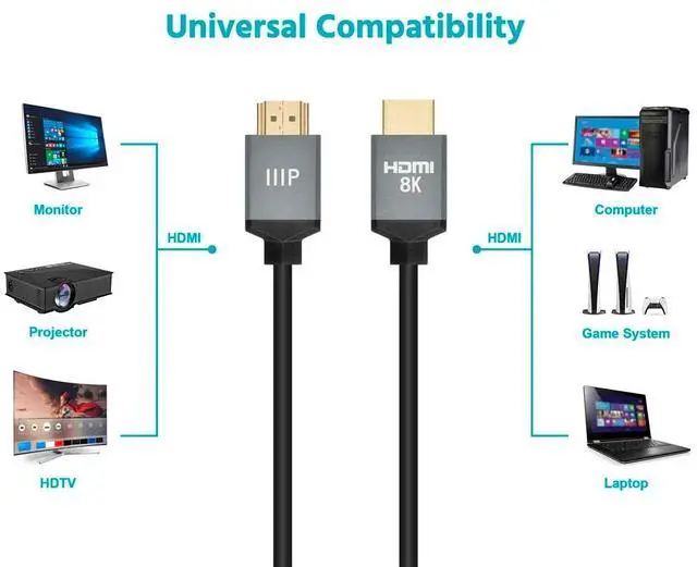 Supports 8K at 60Hz and 4K at 120Hz with 48Gbps bandwidth, delivering crisp detail, fluid motion, and lifelike color for home theater, gaming, and streaming.