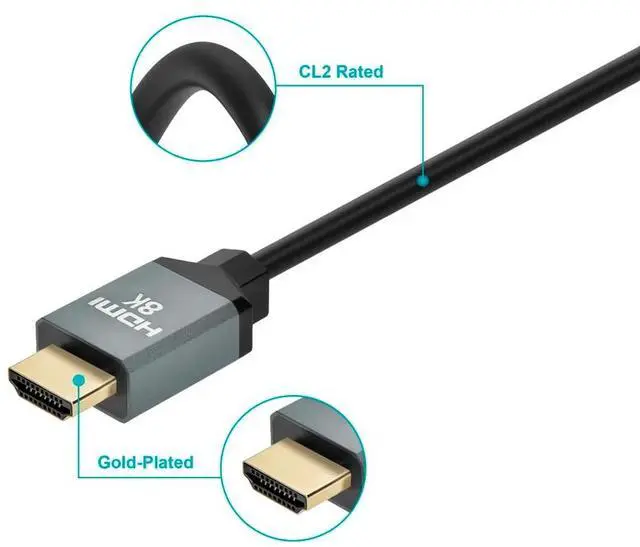 8K Certified Ultra High-Speed Slim HDMI Cable 8K60, 4K120, 48Gbps, HDR, CL2 Rated, Gold-Plated, Black