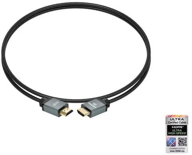 8K Certified Ultra High-Speed Slim HDMI Cable 8K60, 4K120, 48Gbps, HDR, CL2 Rated, Gold-Plated, Black