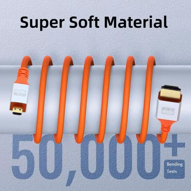 Micro HDMI 4K to HDMI Ultra Soft High Flex HDTV Cable Hyper Super Flexible Cord High Speed Type-A Male to Male for Computer HDTV