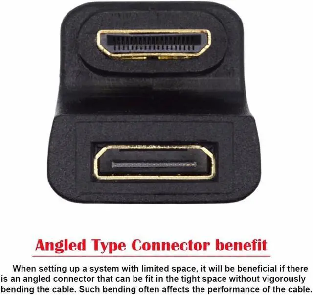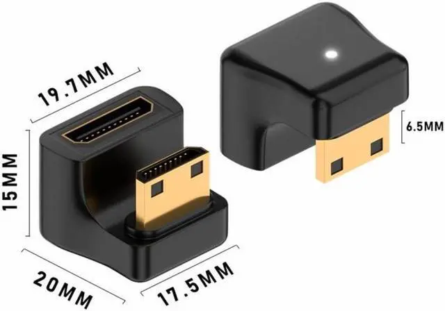 The angled type Allowing you to connect it to a female port, even if space around the port is limited. Port Savers are the perfect solution for relieving wear and tear on your equipments Mini HDMI ports due to constant plugging and unplugging or when heavy Mini HDMI cables put extra strain on the connectors. Both connector are Mini HDMI port. Converts an Mini HDMI Male Plug to a Mini HDMI Female Jack or Vice Versa. Repositions Cable Jack for Easy Access Where Space is Limited. Supports High Definition Resolutions 4K, 1080p, 1080i, 720p, and Standard Video Format.