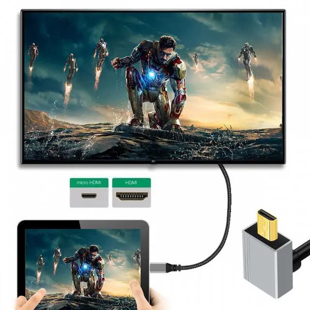 Chenyang 90 Degree Up Angled Micro HDMI 2.1 Ultra Thin HDTV Cable 8K 4K Hyper Super Flexible Slim Cord Type-A to Type-D for Camera HDTV
