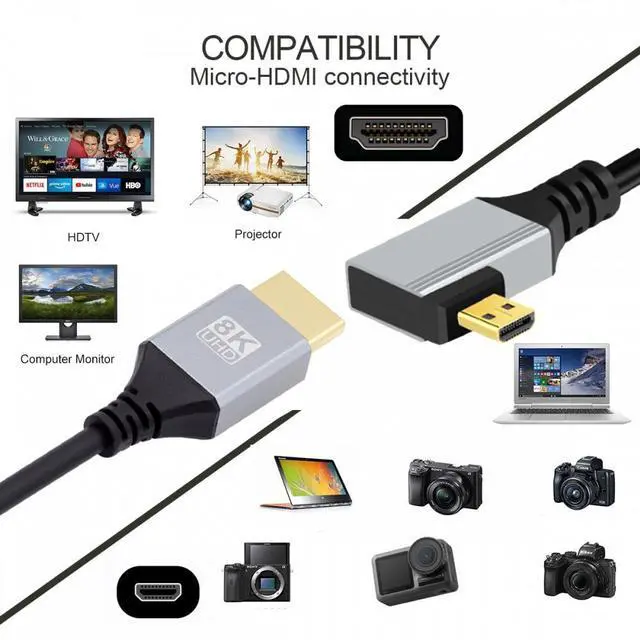 UNIVERSAL COMPATIBILITY: Backwards compatibility with all HDMI versions including HDMI 1.3 / 1.4 / 2.0 / 2.0 a / 2.0 b / 2.1. Perfect for all Micro HDMI enabled devices such as TV's, Monitors, Computers, Camera.