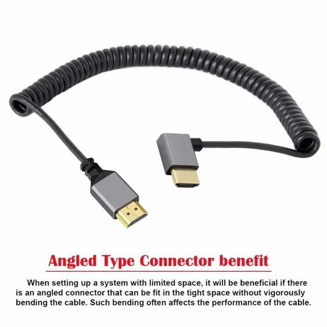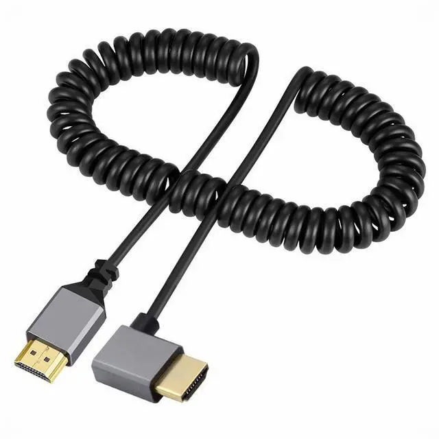 Chenyang HDMI 2.0 Male to HDMI Male 4K 60hz Stretch Coiled Cable Left Angled 90 Degree for HDTV Computer Laptop Monitor HD-035-LE