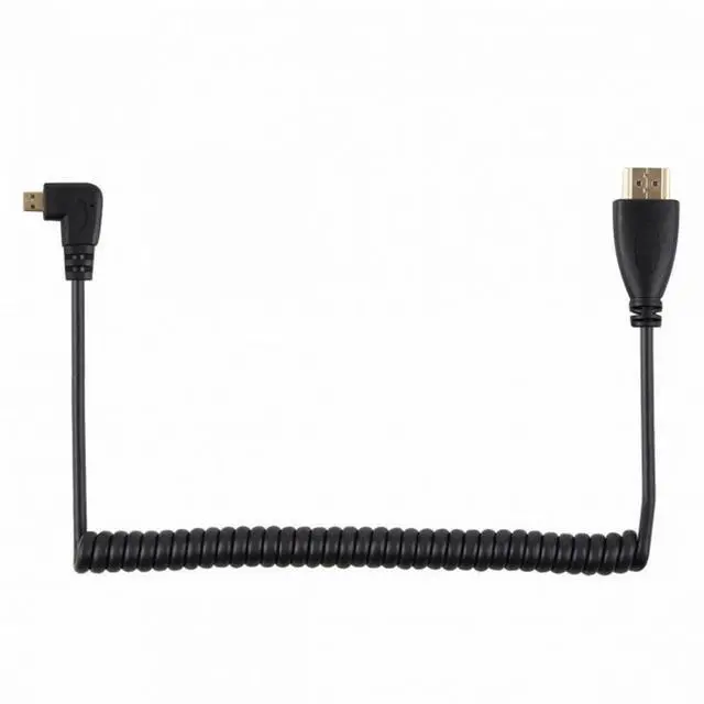 Stretch Spring Left Angled 90 Degree Micro HDMI to HDMI Male HDTV Cable for Cell Phone Tablet Camera
