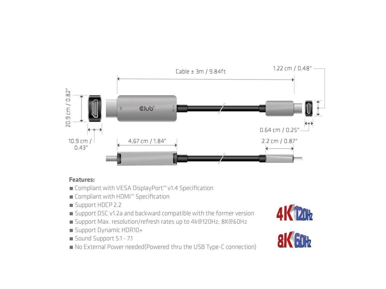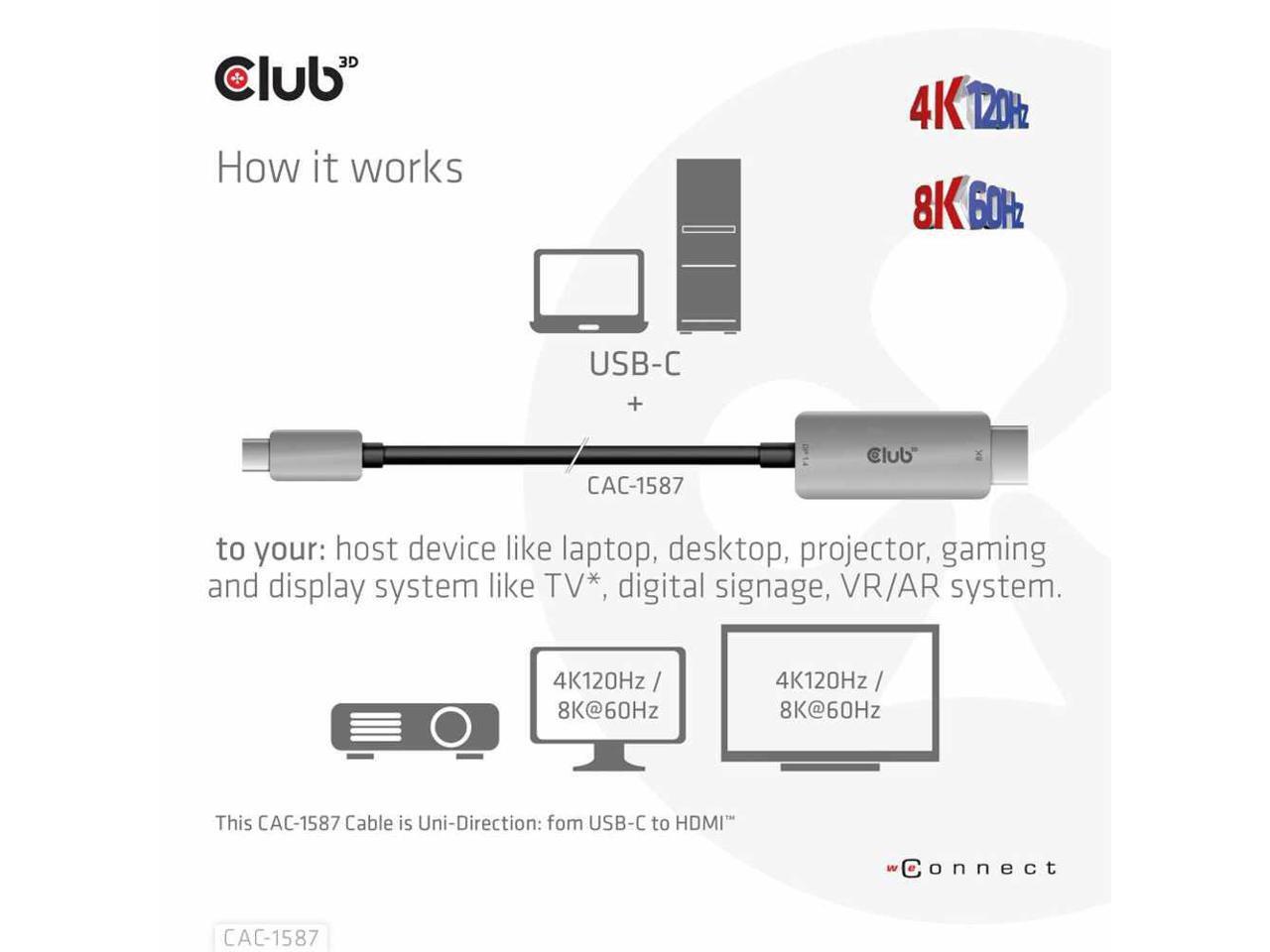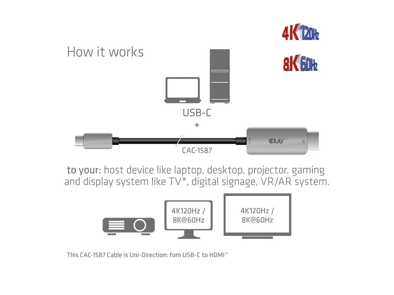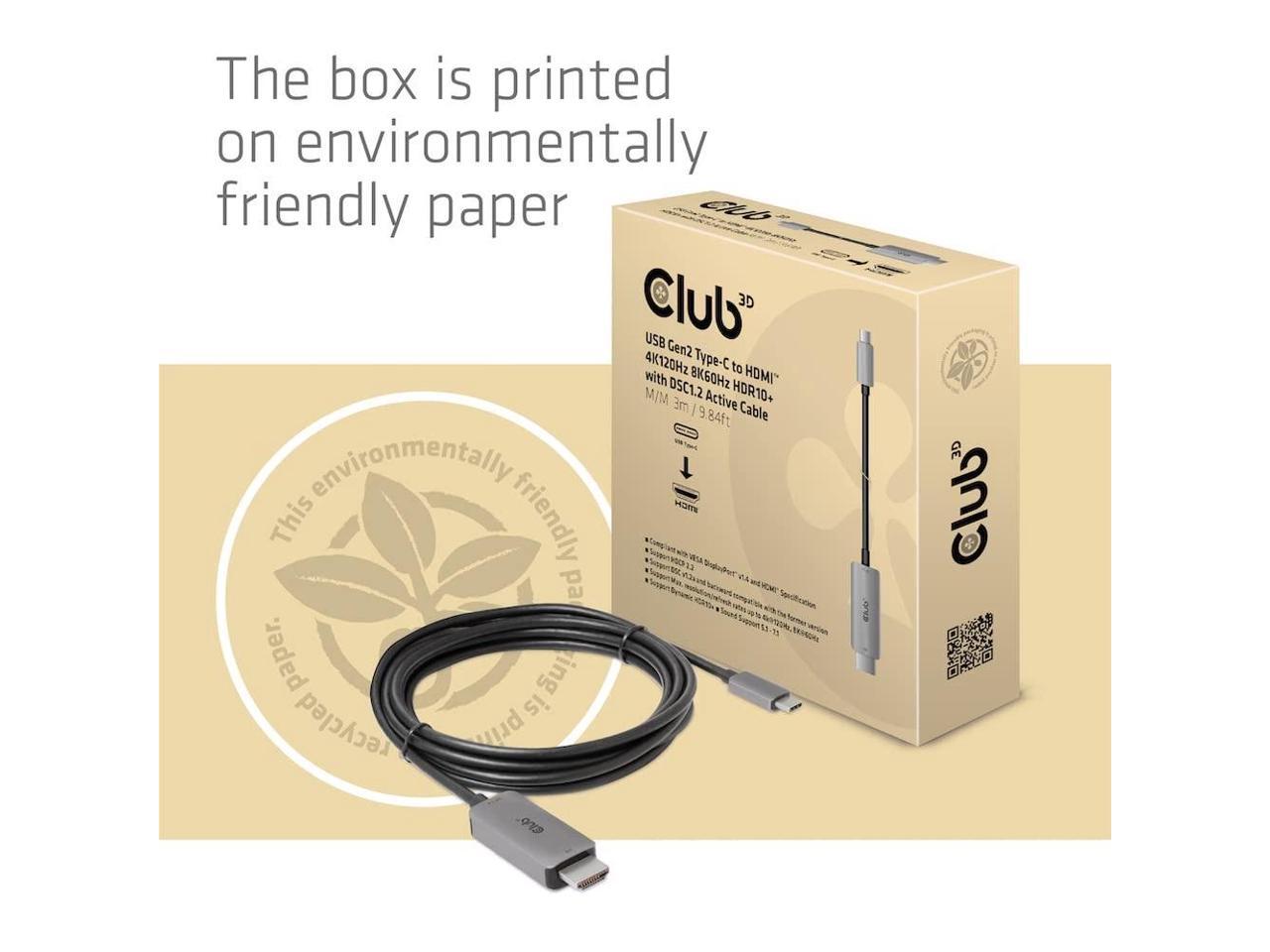Club 3D HDMI/USB-C Audio/Video/Data Transfer Cable - 9.84 ft HDMI/USB-C Audio/Video/Data Transfer Cable for TV, PC, Audio/Video Device, Digital Signage Display, Notebook, Projector, Virtual Reality (V