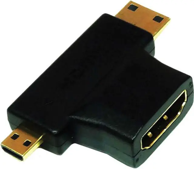 This HDMI Female to Mini-HDMI Male and Micro-HDMI Male 2-in-1 T Adapter is used to converts your HDMI Cable to any Micro-HDMI or Mini-HDMI Connection.