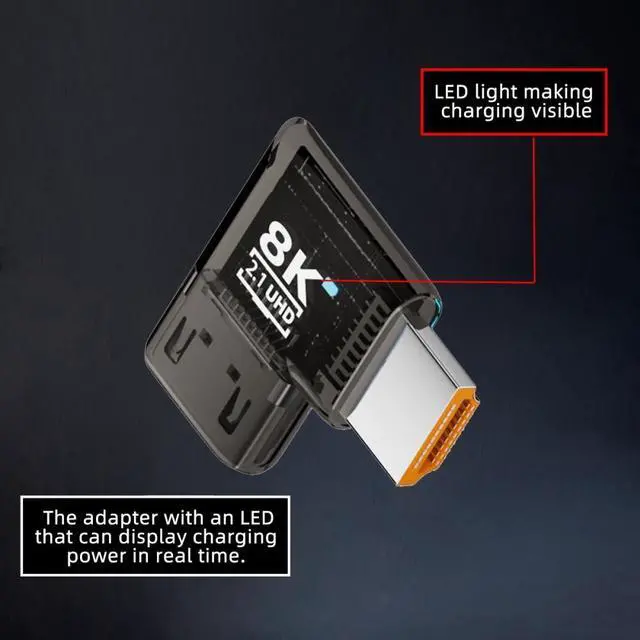 Angled 90 Degree HDMI Male to HDMI 2.1 Female UHD Extension Adapter Extender Transparent with Smart LED 8K 60hz HDTV