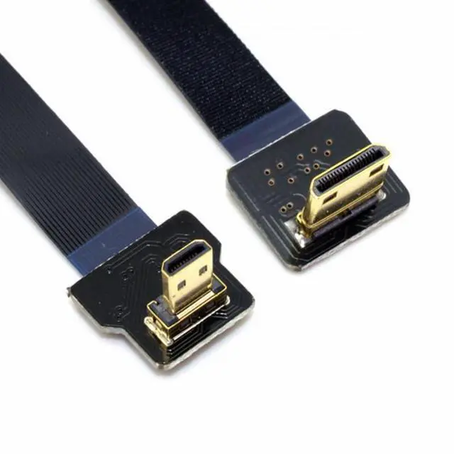 90 Degree Down Angled FPV Micro HDMI Male to Mini HDMI Male FPC Flat Cable