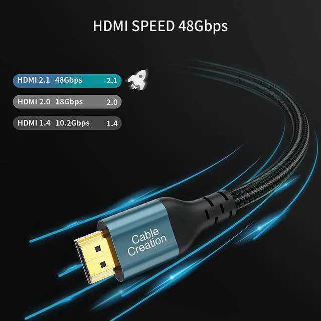 High Performance & StylishFlexible Braided Jacket and Stylish Blue Aluminum shell. The Ultra High Speed HDMI Cable transfer rate up to 48Gbps, 24K gold-plated full metal connector is corrosion-resistant, durable aluminum house casing and triple shielding structure are anti-interference,anti-EMI and RFI interference, preventing signal degradation or attenuation, provide your lag-free and uninterrupted viewing experience.