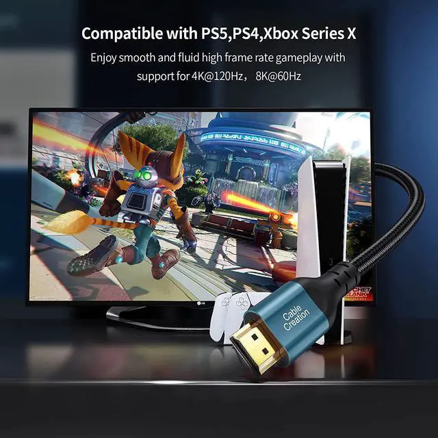 Wide ApplicationThe 8K HDMI 2.1 cable is compatible with Macbook Pro 2021, Apple TV, LG TV, QLED TV, Roku, Sony 8K UHD TV, PS5, PS4, Xbox Series X, Xbox One,Tivo, Vizio, Laptop, PC, RTX?3080, Projector,etc. 24-month product replacement warranty and lifetime friendly technical support. Any question, please feel free to contact us for help first.