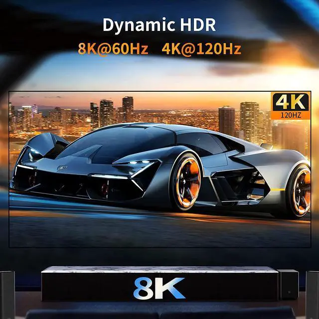 • Top Technology8K HDMI 2.1 CableHDMI 2.1 version supports higher video resolutions and refresh rates including 8K@60 Hz and 4K@ 120Hz / 60Hz, 1080P, also compatible with HDMI 2.0b/2.0a/2.0/1.4/1.3/1.2/1.1 version. With 8K HDMI's unique Dynamic HDR and 12 Bit color processing technology, each scene of the video is every frame, with more ideal depth, brightness, detail, contrast and wider color gamut, giving you an amazingly viewing experience.
