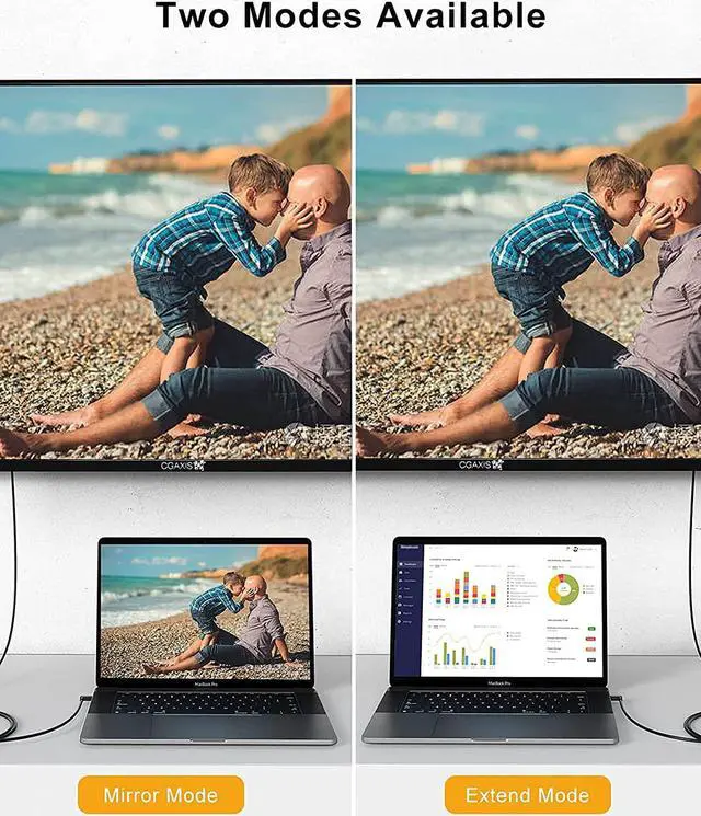 ?Vivid 4K@30Hz Resolution- HDMI to USB C cord supports video resolutions up to 4k@30Hz. Extend mode let your laptop for visibility of multiple tasks at the same time; Mirror mode gives your laptop/phone to a large screen for a visual enjoyment