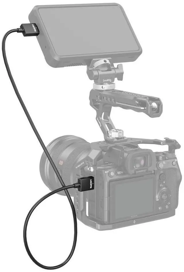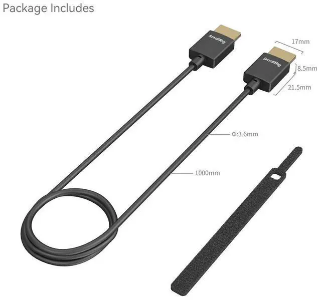 The ultra-slim design, with a mere 3.6 mm outer diameter, makes this cable significantly thinner and more flexible than standard HDMI cables, allowing for easy maneuverability and integration into compact spaces. The low-profile connectors are thoughtfully designed to prevent obstruction of adjacent ports, maintaining the functionality of your entire setup. With a generous 100cm length, this HDMI cable offers ample reach for diverse configurations, making it a perfect fit for your camera rig. Additionally, the included cable tie aids in efficient cable management, keeping your rig organized and clutter-free.