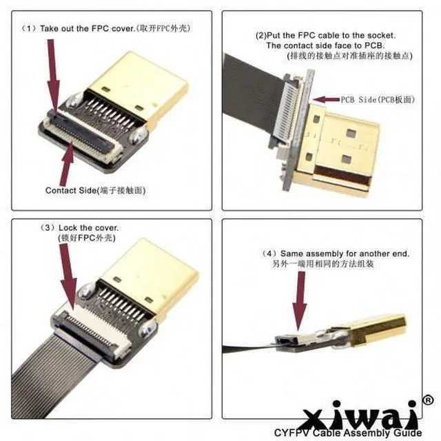 CYFPV 90 Degree Up Angled FPV Mini HDMI Male to HDMI Male FPC Flat Cable 20cm