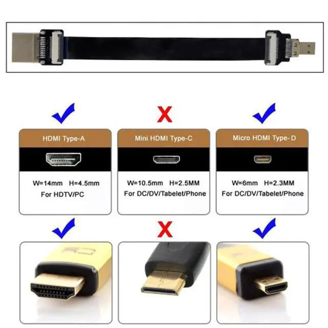 CYFPV HDMI Male to Micro HDMI Male Extension FPC Flat Cable 1080P for FPV HDTV Multicopter Aerial Photography