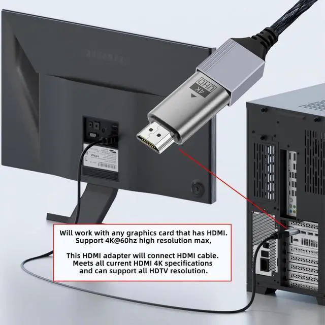 Will work with any graphics card that has HDMI output. Support 4K@60hz high resolution max,