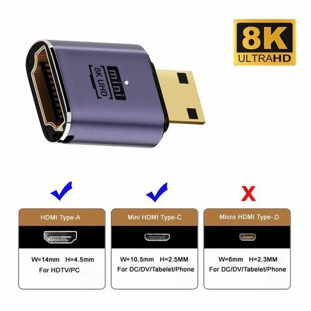 Mini HDMI Male to HDMI 2.1 Female UHD Extension Gold Converter Adapter Support 8K 60hz HDTV