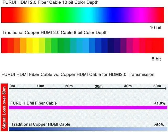 - Fiber Optic HDMI 2.0 Cable is the best long reach HDMI(4K@60Hz subsampling 4:2:0/4:2:2/4:4:4) (16 bit for 4:4:0/ 12 bit for 4:2:2/ 8 bit for 4:2:4 color depth) interconnection solution on the market