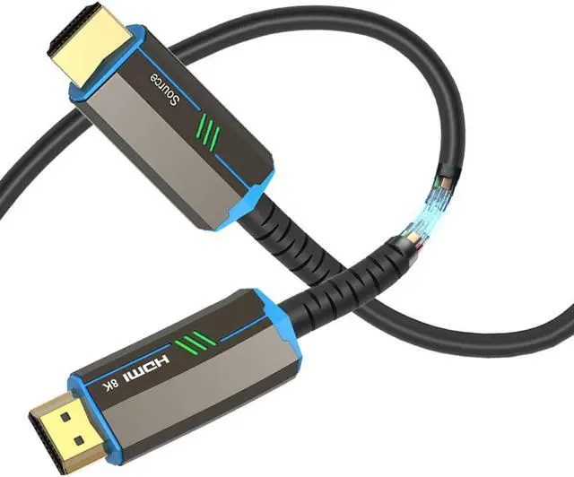 - Real 8K HDMI Fiber Optic Cable,The HDMI Cable Supports 8K 7680*4320@60Hz,4K@120Hz, 2K, 1080P, HDR10 4:4:4. Featuring 100% Real 8K quality, each cable is individually tested to supports the highest standard of 8K HDMI 2.1 standards. Compatible with all kinds of HDMI devices,such as 8K UHD TV, Laptop, PC, DVD, PS3, PS4 Pro, Xbox, Blu-ray players, projectors, and more.