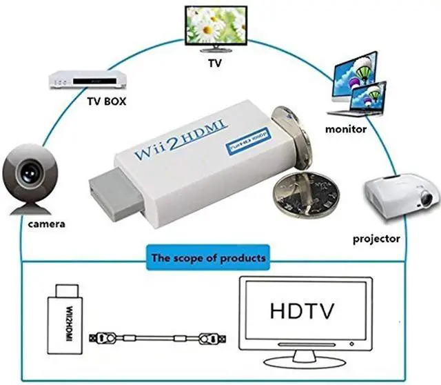 1.Wii to HDMI Converter attaches to standard video port and standard HDMI port, converts your Wii video and audio output to full digital HDMI format