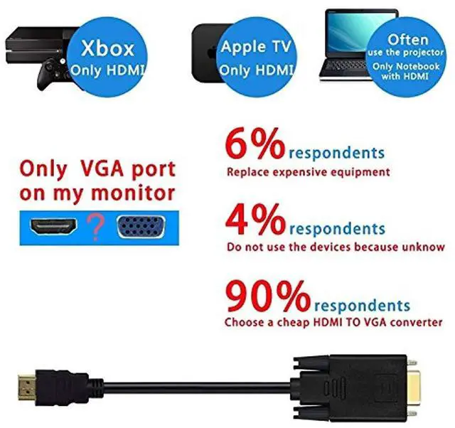 2.[DRIVE-FREE,PLUG&PLAY]:Built-in active IC chipset, convert digital HDMI signal to analog VGA signal, no external converter needed, just plug and play.