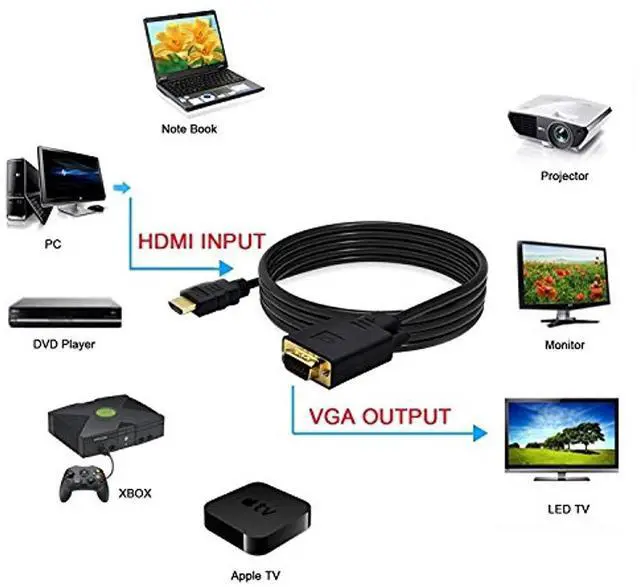 1.[PREMIUM QUALITY]:Built-in active IC chipset,dorectly tramit and convert digital signal from HDMI devices:Nintendo Switch, Notebook, PC, Laptop, DVD player,Roku, Chromebook,PS3/4, Xbox,TV Box etc. to analog signal VGA devices TV, Projector, Monitor etc.