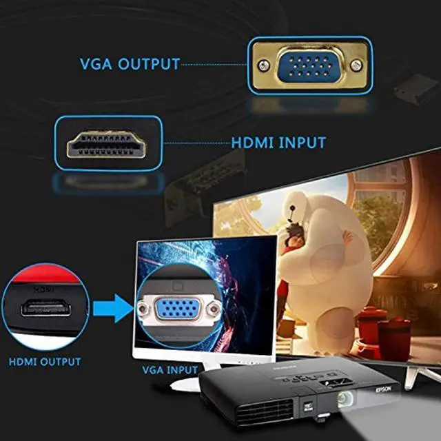 4.[UPGRADED 3M LONG]3M long cable is utility and convenient to convert HDMI signal input to VGA signal output.