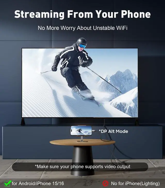 - Connect a USB-C smartphone to a large HDMI-equipped TV