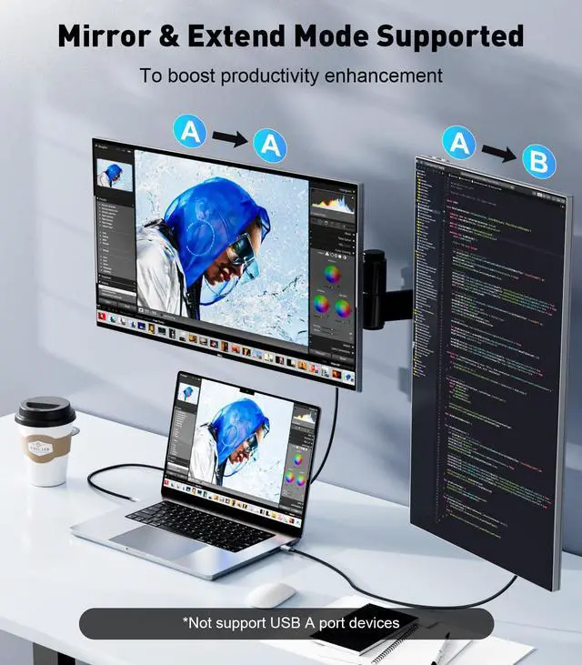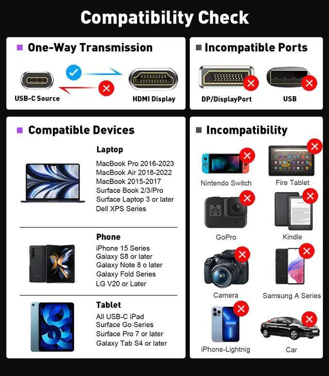 plug-and-play&high speed transmissionThe USB C to HDMI cord is completely plug and play, no driver installation required. Immediately transfer signals from any usb c source device to hdmi monitor at high speed without loss. Just one cable is needed for seamless switching of multi-scene applications, supports 4K60Hz mirroring/expansion mode for a larger screen display. [Note: Only support one-way signal transfer from USB C source to HDMI monitor]