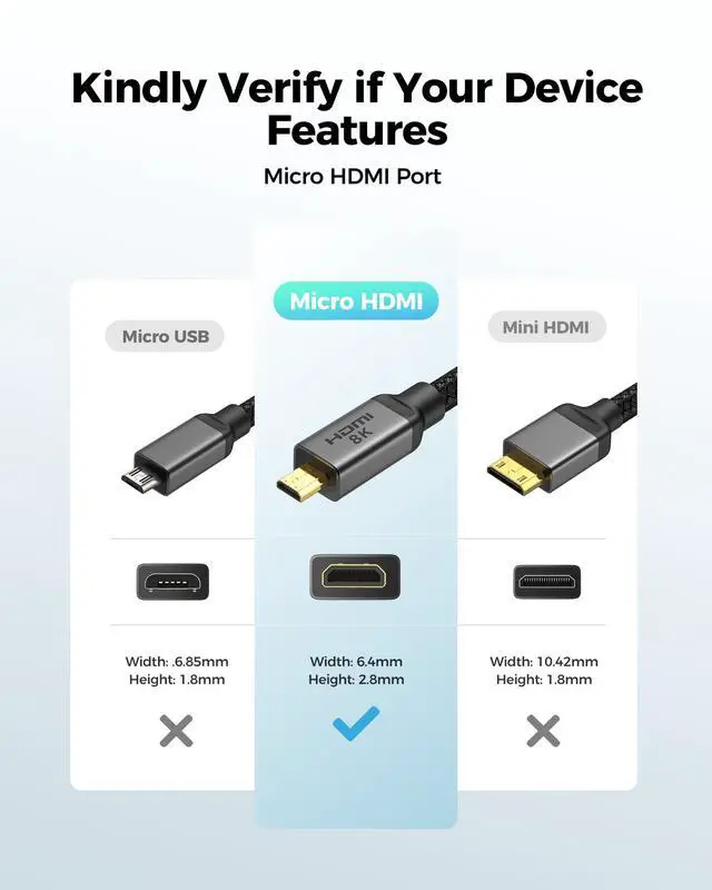 ![Main image of 8K 4K Micro HDMI to HDMI Cable 10ft, Micro HDMI 2.1 Adapter [8K@60Hz, 4K@240Hz 144Hz 120Hz] 6K 5K, 48Gbps, HDR, Compatible for Samsung G8,G9, Camera, Raspberry Pi 5 4, GoPro Hero, Cam Link](https://c1.neweggimages.com/productimage/nb640/C5MSD2603100BJ3R1BB.jpg)