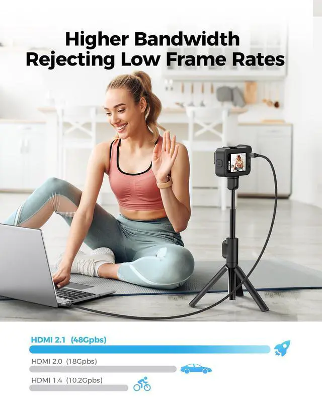 ![Alt view image 4 of 7 - 8K 4K Micro HDMI to HDMI Cable 10ft, Micro HDMI 2.1 Adapter [8K@60Hz, 4K@240Hz 144Hz 120Hz] 6K 5K, 48Gbps, HDR, Compatible for Samsung G8,G9, Camera, Raspberry Pi 5 4, GoPro Hero, Cam Link](https://c1.neweggimages.com/productimage/nb640/C5MSD2603100BJ3UL41.jpg)